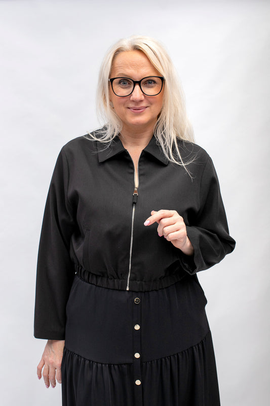 Ikdienas kleita ar smalku ziedu rakstu, jostu un apakškleitu