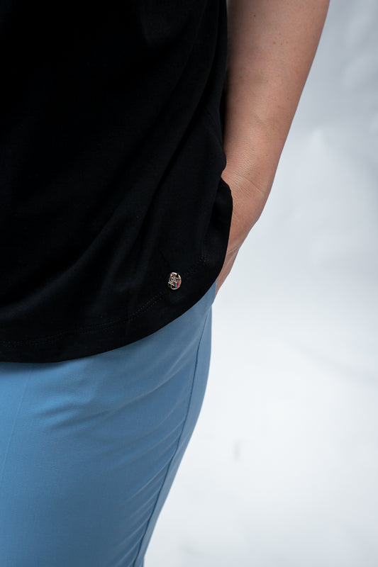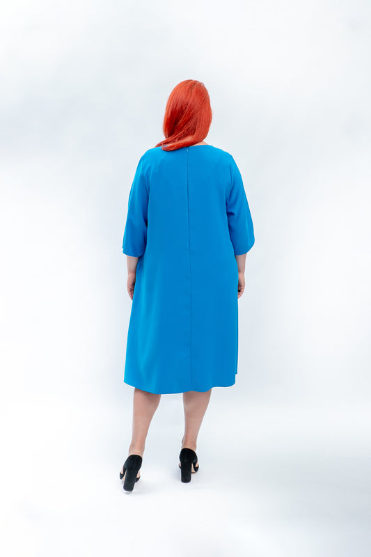 Klasiska zila kleita ar spīdumiem ap kaklu