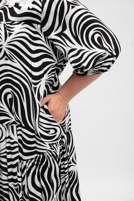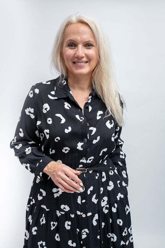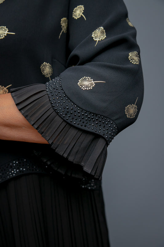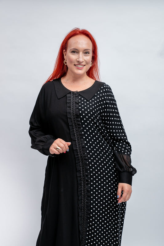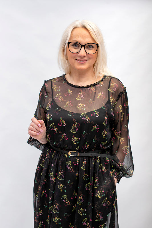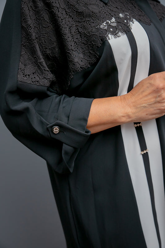 Melnbalta kleita ar mežģiņu izšuvumiem