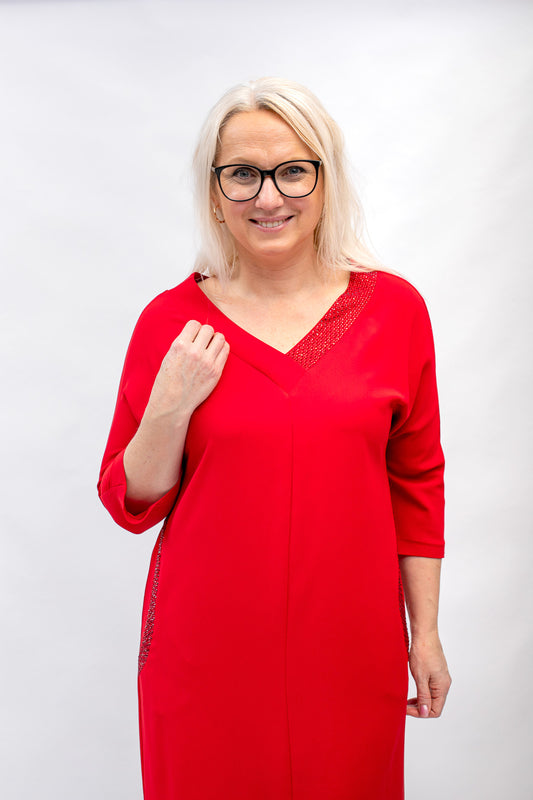 Sarkana kleita ar V izgriezumu un spidumiem