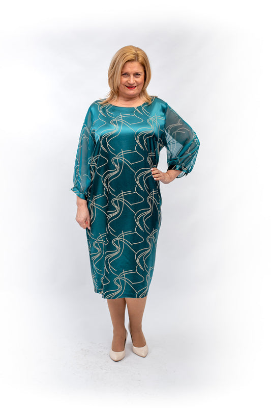 Satīna kleita ar šifona piedurknēm