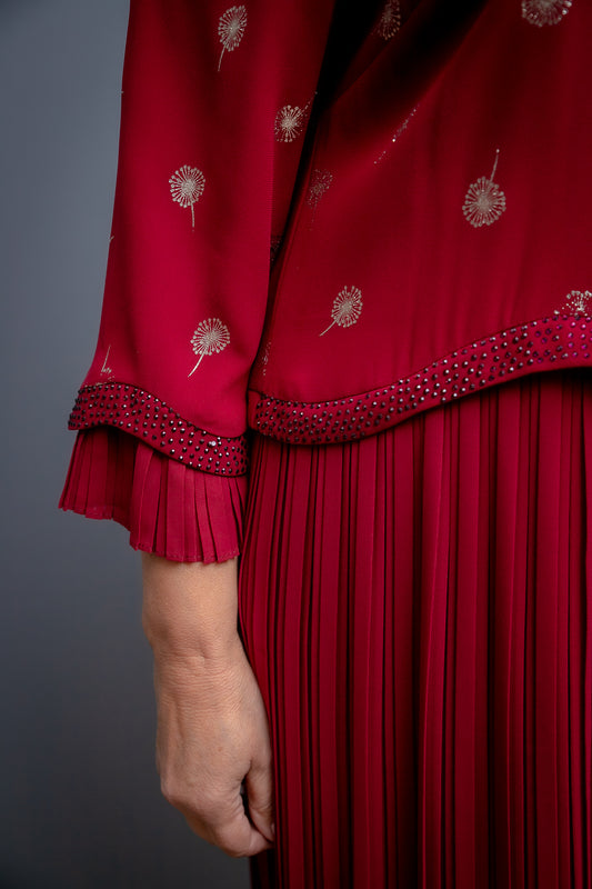 Sarkans kokvilnas kostīms ar platām biksēm