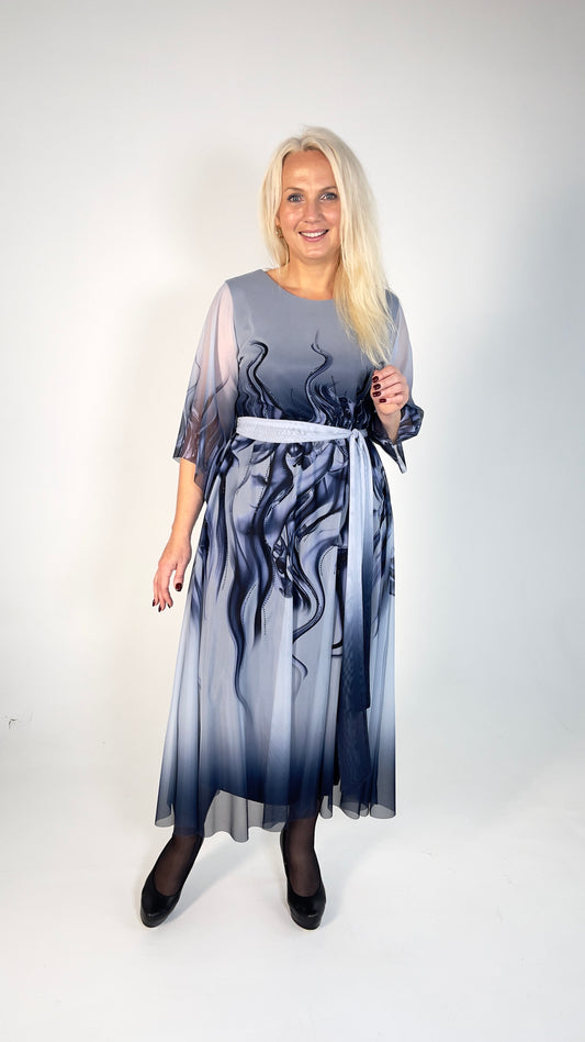 Šifona kleita ar jostu un apakškleitu