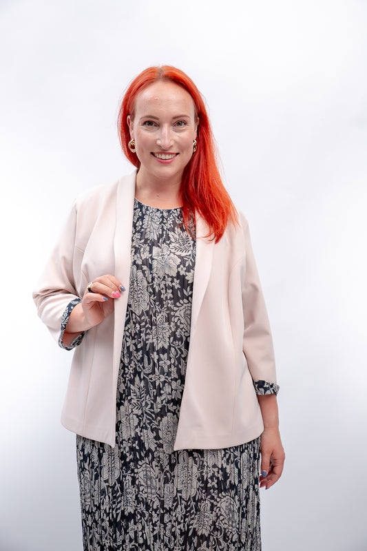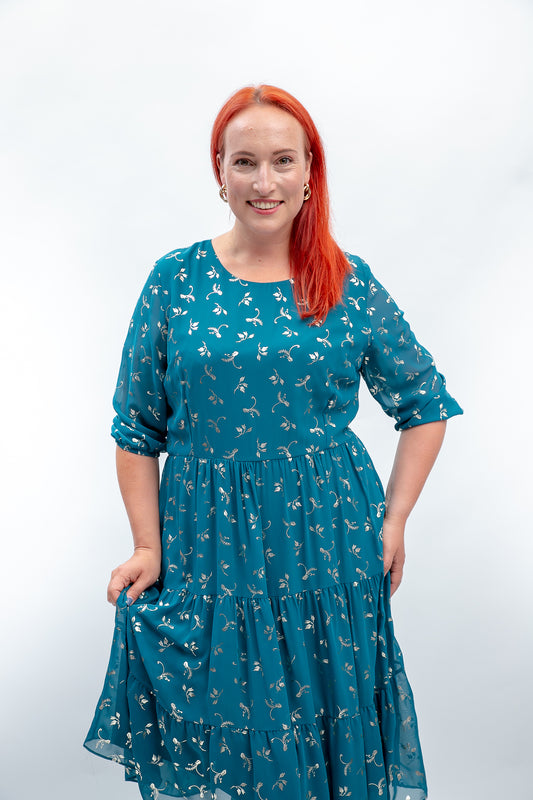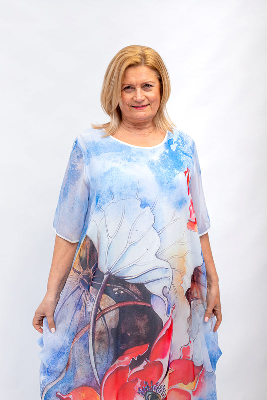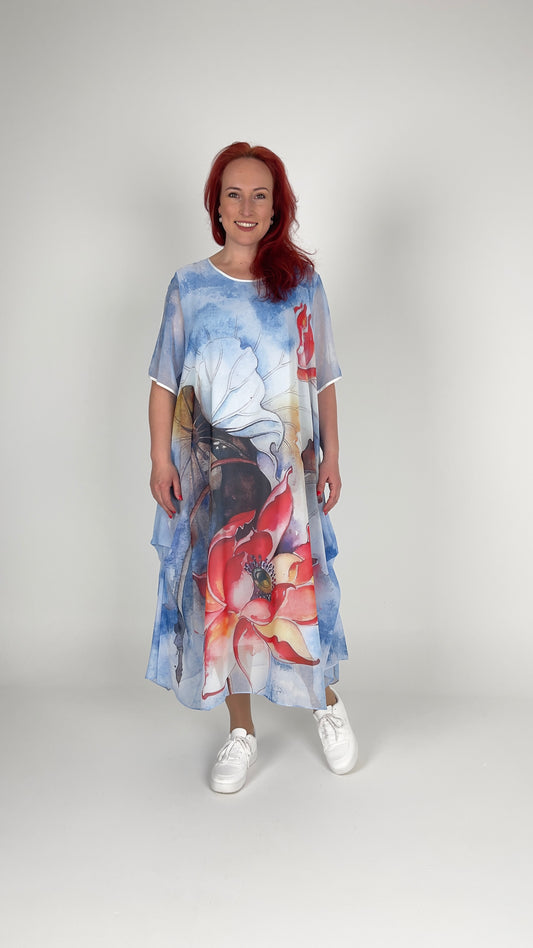 Šifona kleita ar ziedu rakstu un mežģīņu piedurknēm