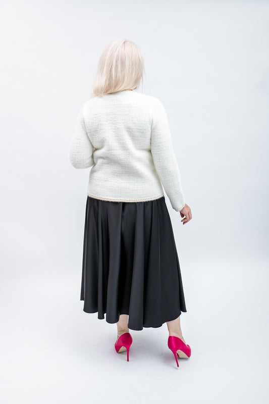 Balta kokvilnas kleita ar melniem ziediem un jostu