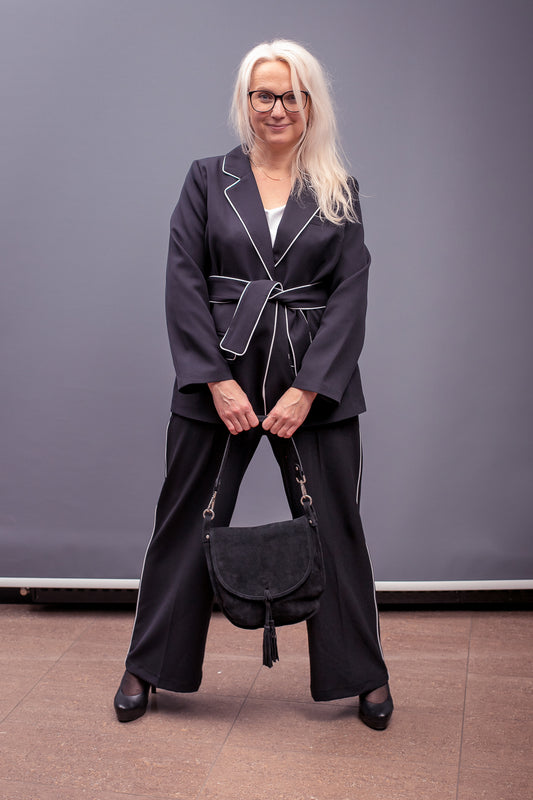 Viskozes kleita ar smalku rakstu un sasienamu jostu