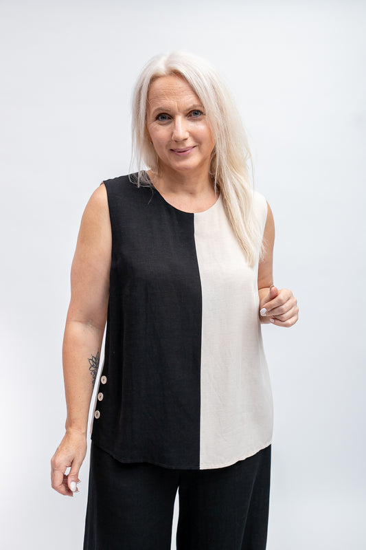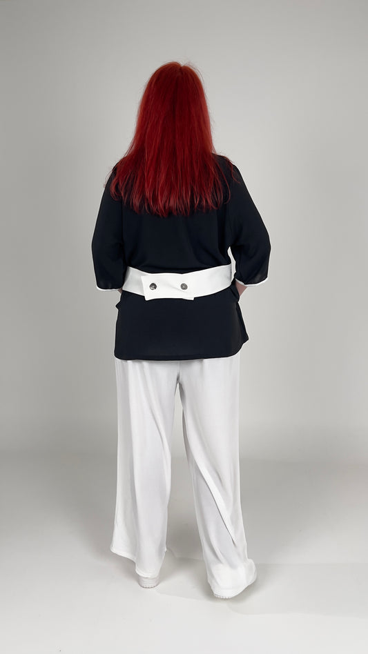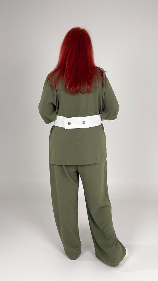 Divdaļīgs kostīms ar platajām biksēm un veste