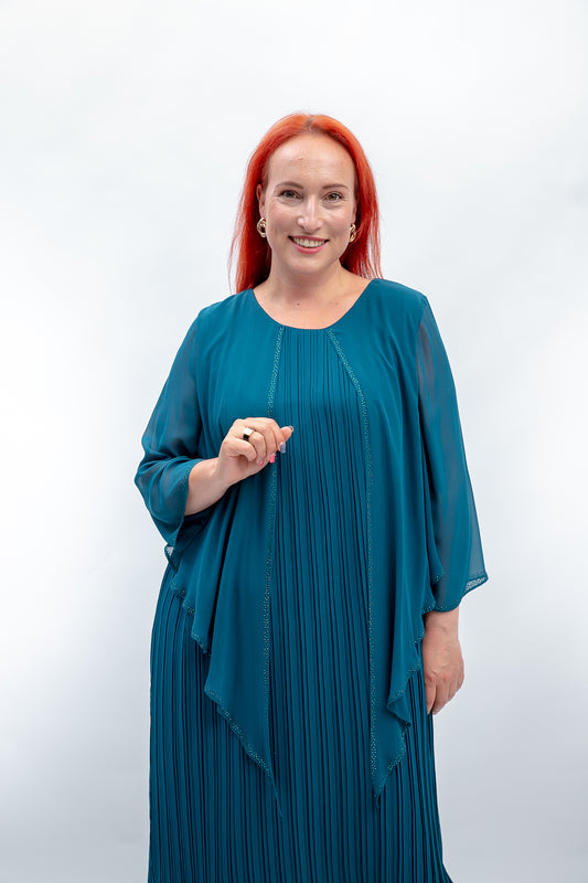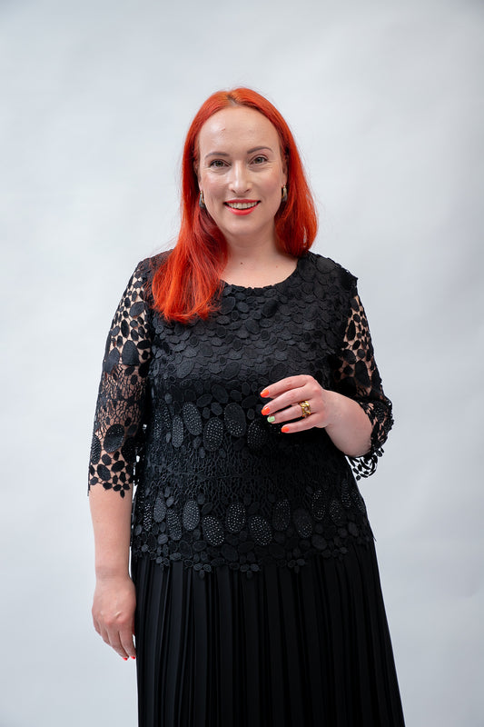 Gara kleita ar flisētiem svārkiem un spidumiem - melna