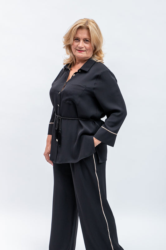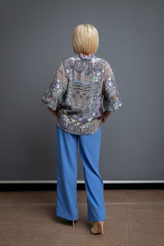Gaiši pelēks lina kostīms ar īsām piedurknēm