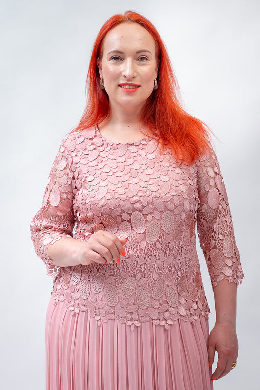 Gara kleita ar flisētiem svārkiem un spidumiem - maigi rozā