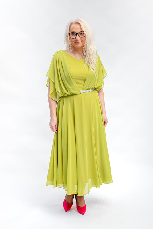 Gaisīga šifona kleita ar ziedu rakstu un jostu