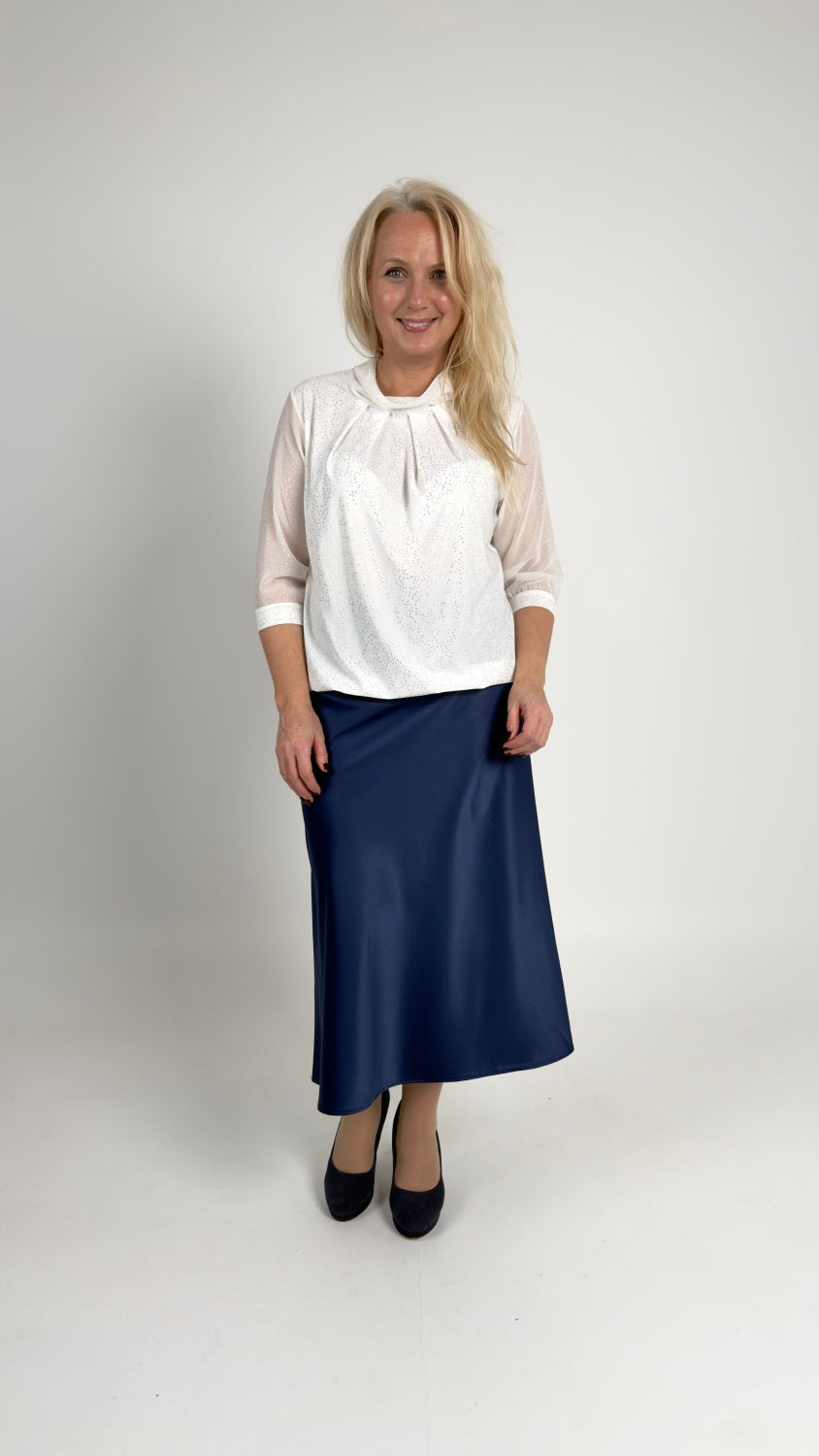 Balta blūze ar sudraba detaļām