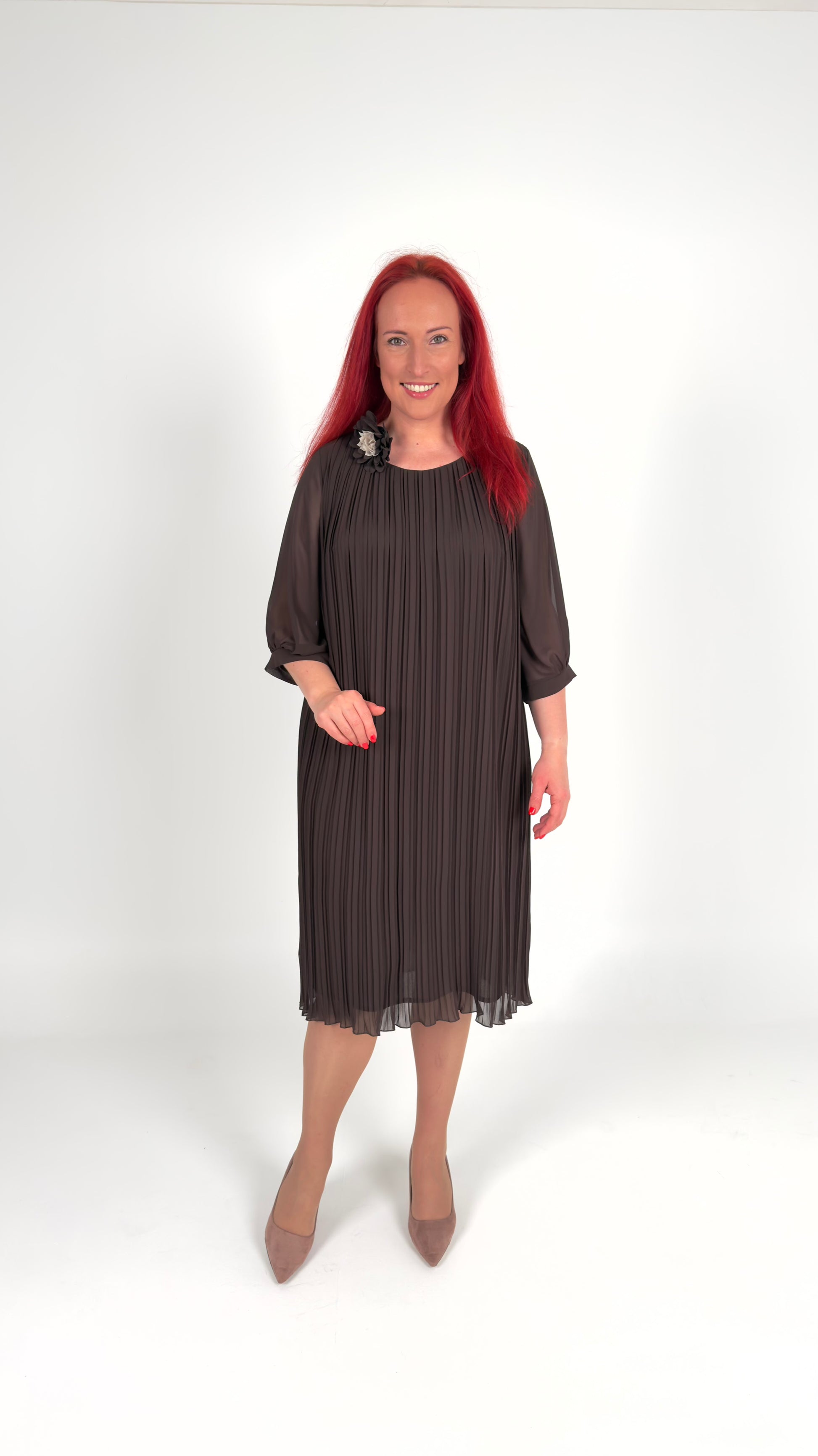 Brīvi krītoša plisēta kleita šokolādes krāsā