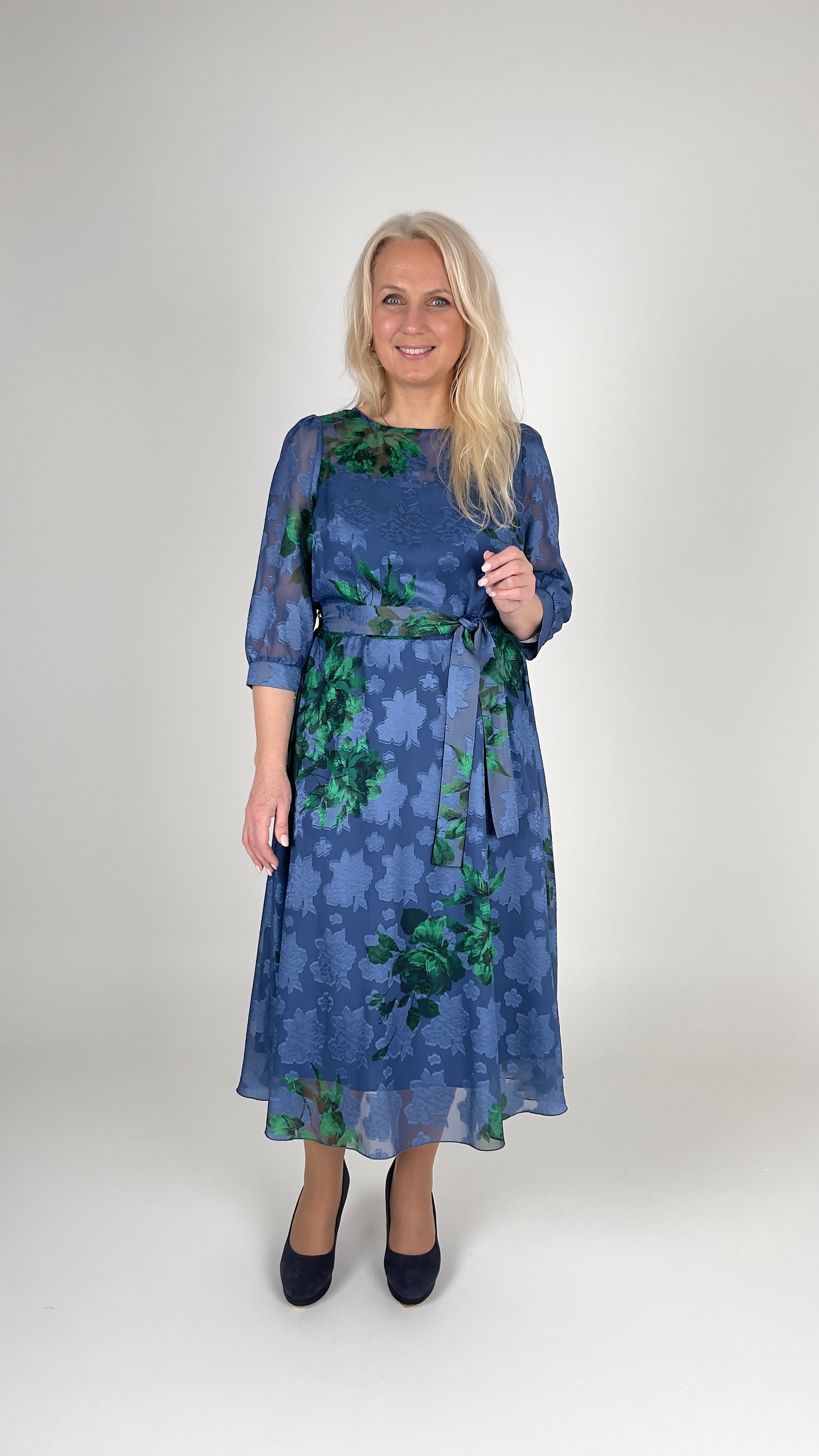 Gaisīga šifona kleita ar ziedu rakstu un jostu