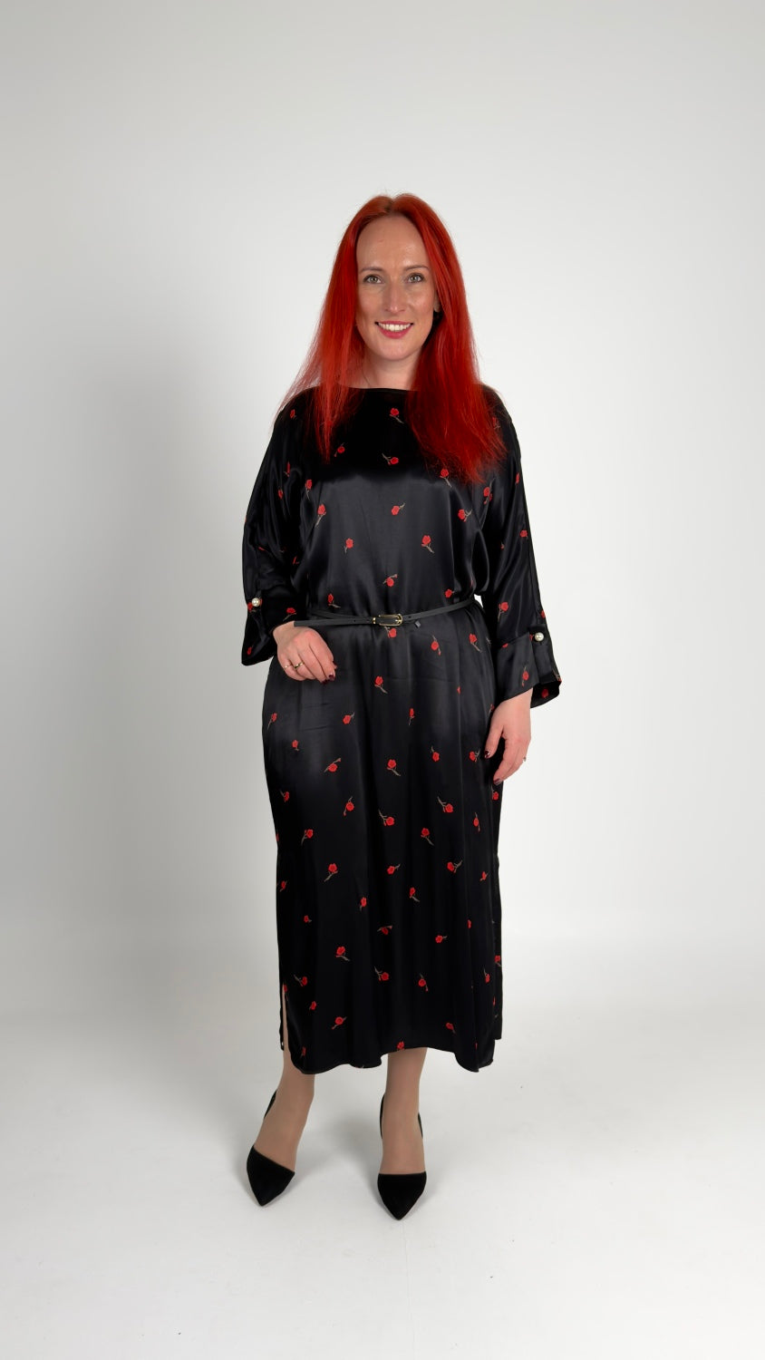 Gara viskozes kleita ar rožu rakstu un jostu