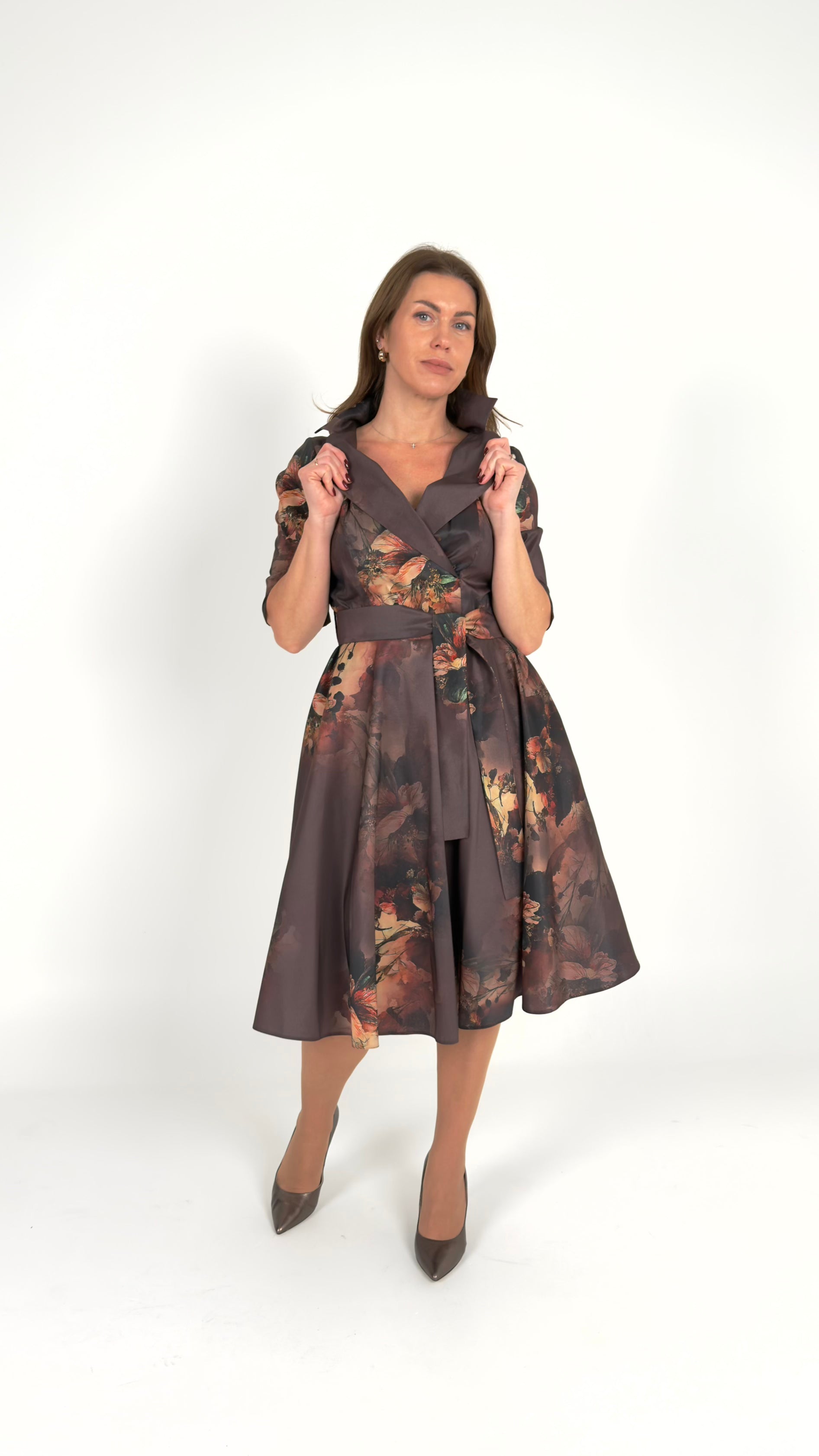 Klasiska kleita ar ziedu rakstu un krādziņu