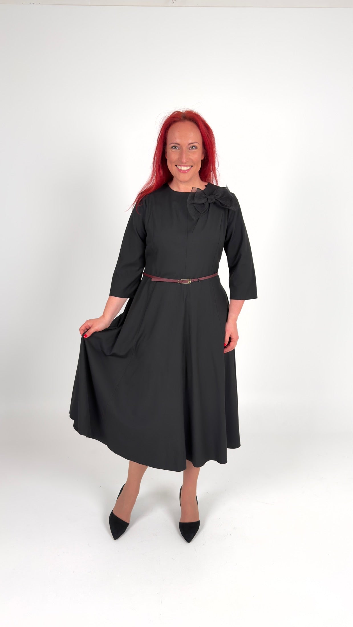 Klasiska melna kleita ar jostu un piespraudi-bantīti