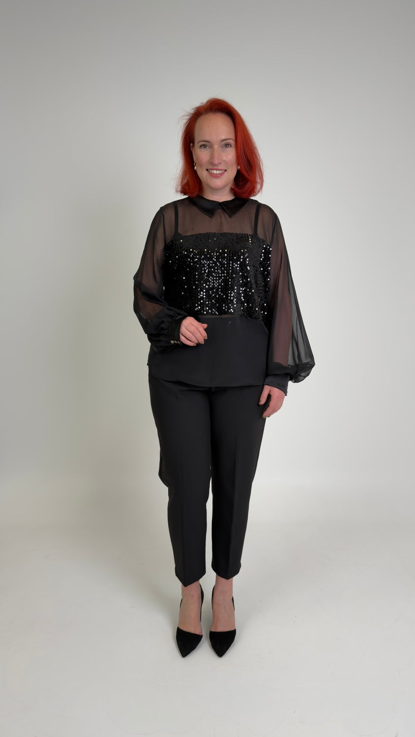 Melna šifona blūze ar fliteriem