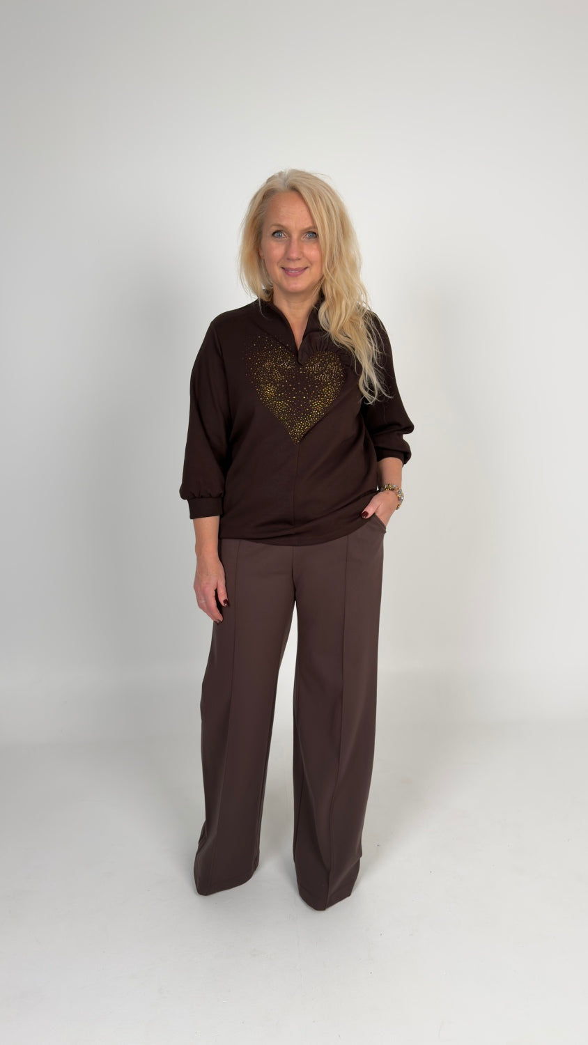 Šokolādes krāsas trikotāžas augša ar spīglīšiem
